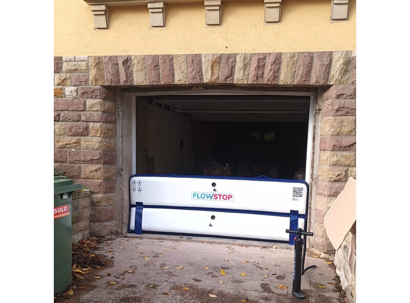 FLOWSTOP ist ein aufblasbarer Hochwasserschutz, der Türen, Tore, Garagen, Fenster und viele verschiedene Arten von Öffnungen schützt. Er wird in der Breite massgenau auf die vorgesehene Öffnung angefertigt. Es sind keine baulichen Massnahmen erforderlich.