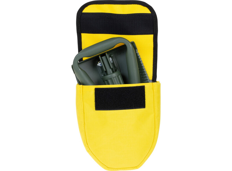 Die Tasche bietet einfachen Zugriff auf den Klappspaten durch einen Klettverschluss. Die grosse Deckelpatte schützt vor Verlust.