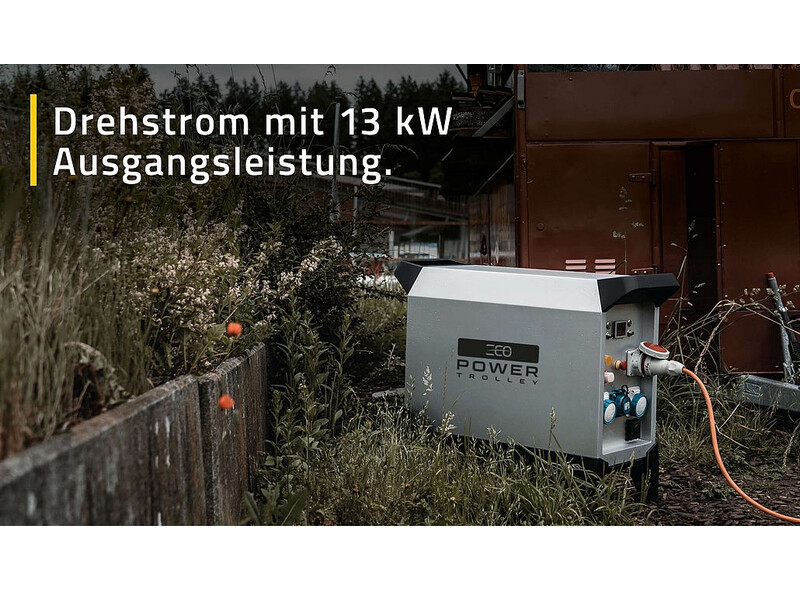 Der ecoPower Trolley ist ein leistungsstarker Batterie-Generator, der tragbaren Strom überall dort liefert, wo Sie ihn brauchen. Mit einer Kapazität von 8.9 kWh und einer Dauerleistung von bis zu 11 kW (400V, 3-Phasen) versorgt dieser mobile Energiespeicher zuverlässig Maschinen, Werkzeuge und Elektrogeräte.