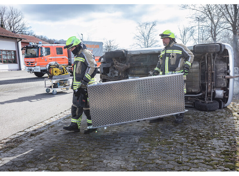 Rettungsplattform aus Aluminium zur Rettung verunglückter Personen aus LKW, Bussen und Zügen.