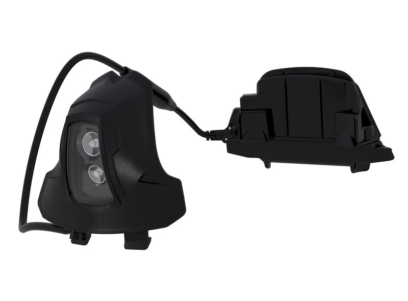 - Lampe de casque à double faisceau avec éclairage de proximité et faisceau ponctuel et une puissance lumineuse totale de plus de 250 lumens