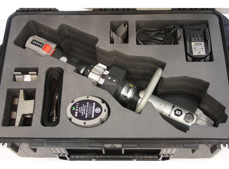 Valise compartimentée adaptée pour ranger et transporter l'outil de forcemement électrique StrongArm, sa batterie, son chargeur et ses accessoires.