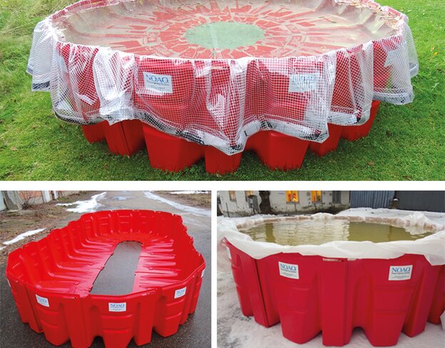 «NOAQ Boxpool» – einzelne Elemente können zu einem “Pool” bzw. Becken in der gewünschten Grösse und Form verbunden werden (z.B. als Löschwasser-Reserve, Rückhaltebecken usw.)